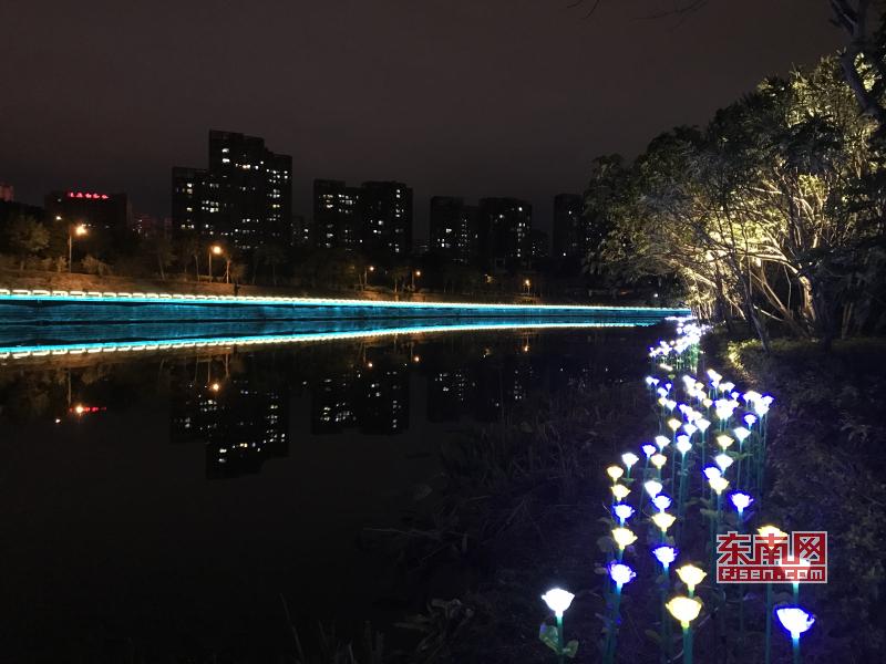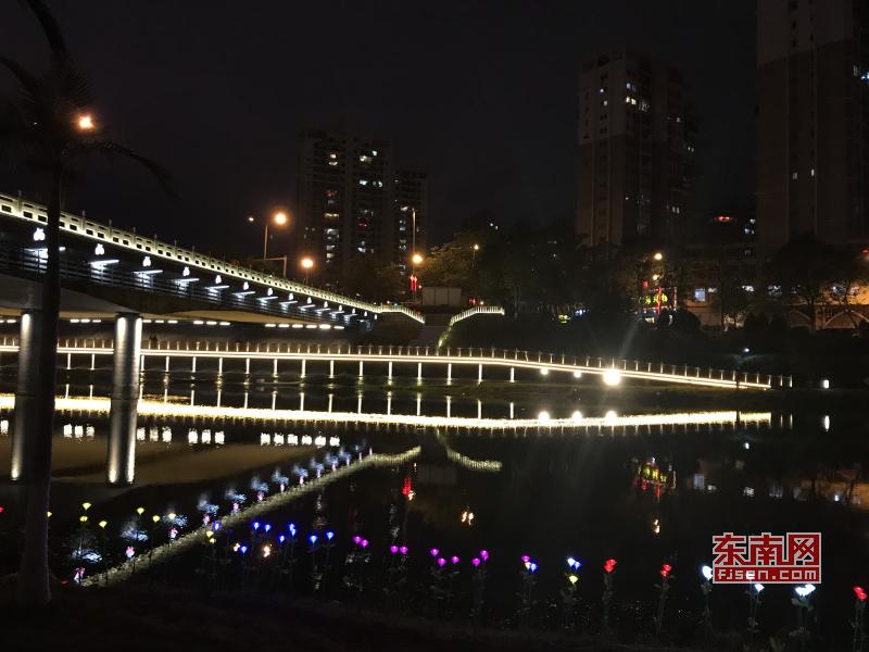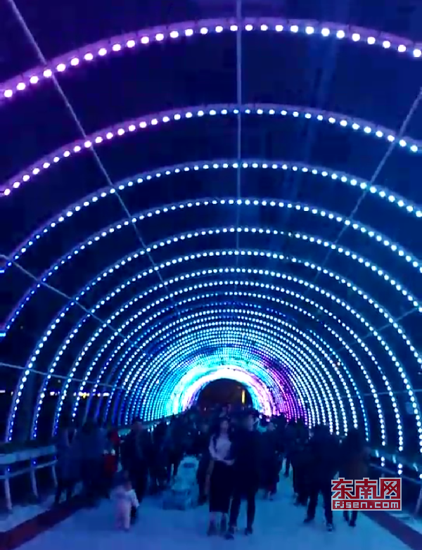 璀璨绚丽灯光扮靓莆田夜景 东南网莆田2月22日讯(本网记者 王龙风)火树银花,灯水交融,流光溢彩,夜色辉煌。春节期间正式亮灯的莆田泗华溪、绶溪公园华丽夜景,成为许多市民夜间游玩不可错过的绝佳去处,每天都有许多市民沿着泗华古桥—星光隧道—新延寿桥底—过溪桥—延寿古桥,这一“夜游画廊”,一睹两溪公园璀璨夜景的风采。 正月初六(2月21日),是春节长假的最后一个夜晚,东南网记者来到泗华溪、绶溪公园看到,处处色彩斑斓,一片灯火辉煌景象。走进公园内,一路上游人如织,来来往往好不热闹。色彩变换炫动的星光隧道,更是吸引了许多市民前来穿梭体验,许多小孩兴奋地追逐着地面上游动的“鱼儿”。